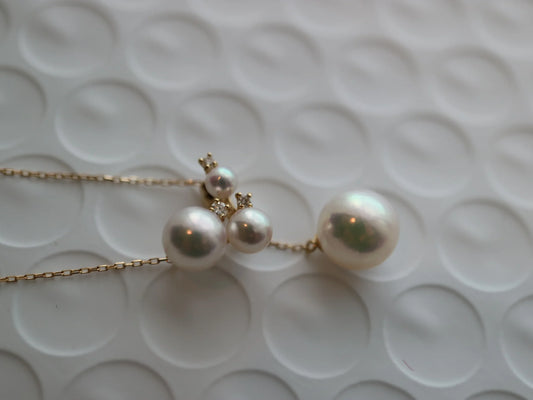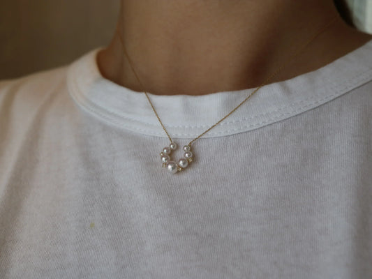 Gradient Sized Baby Akoya Pearl Diamond Horseshoe Shaped Pendant Necklace 18K Gold