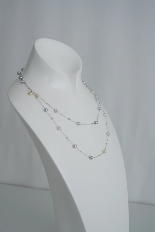 Natural Multiple Color Akoya Pearl Station Necklace K18WG