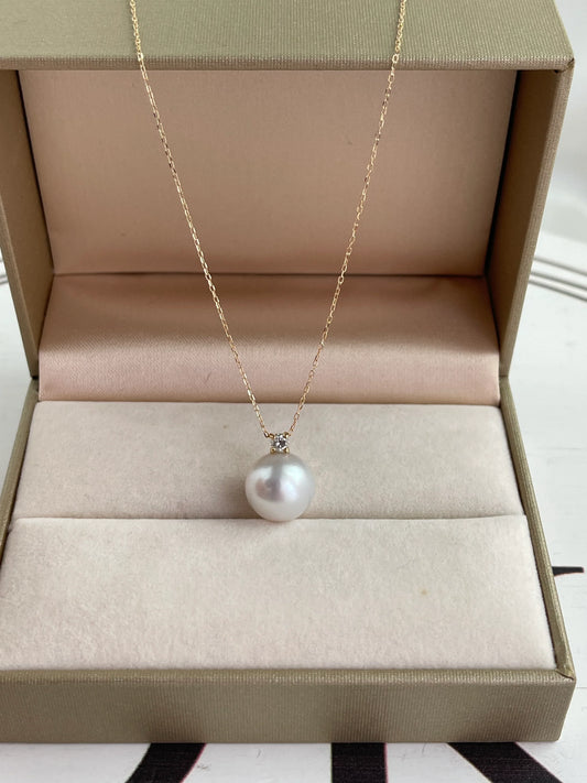 11 mm Mặt Dây Chuyền Ngọc Trai Biển Nam Vàng 18K Mặt Kim Cương – Vàng Trắng 18K