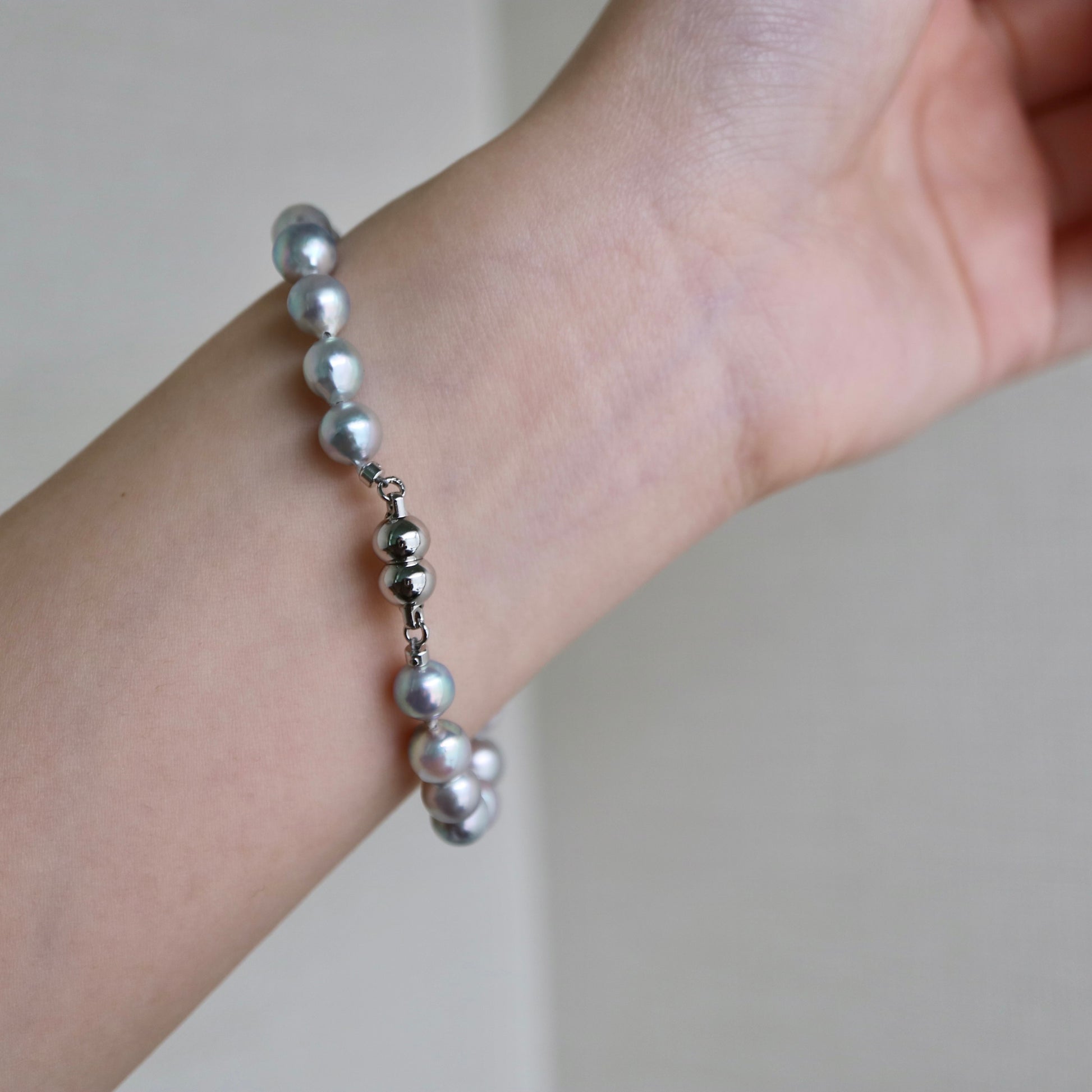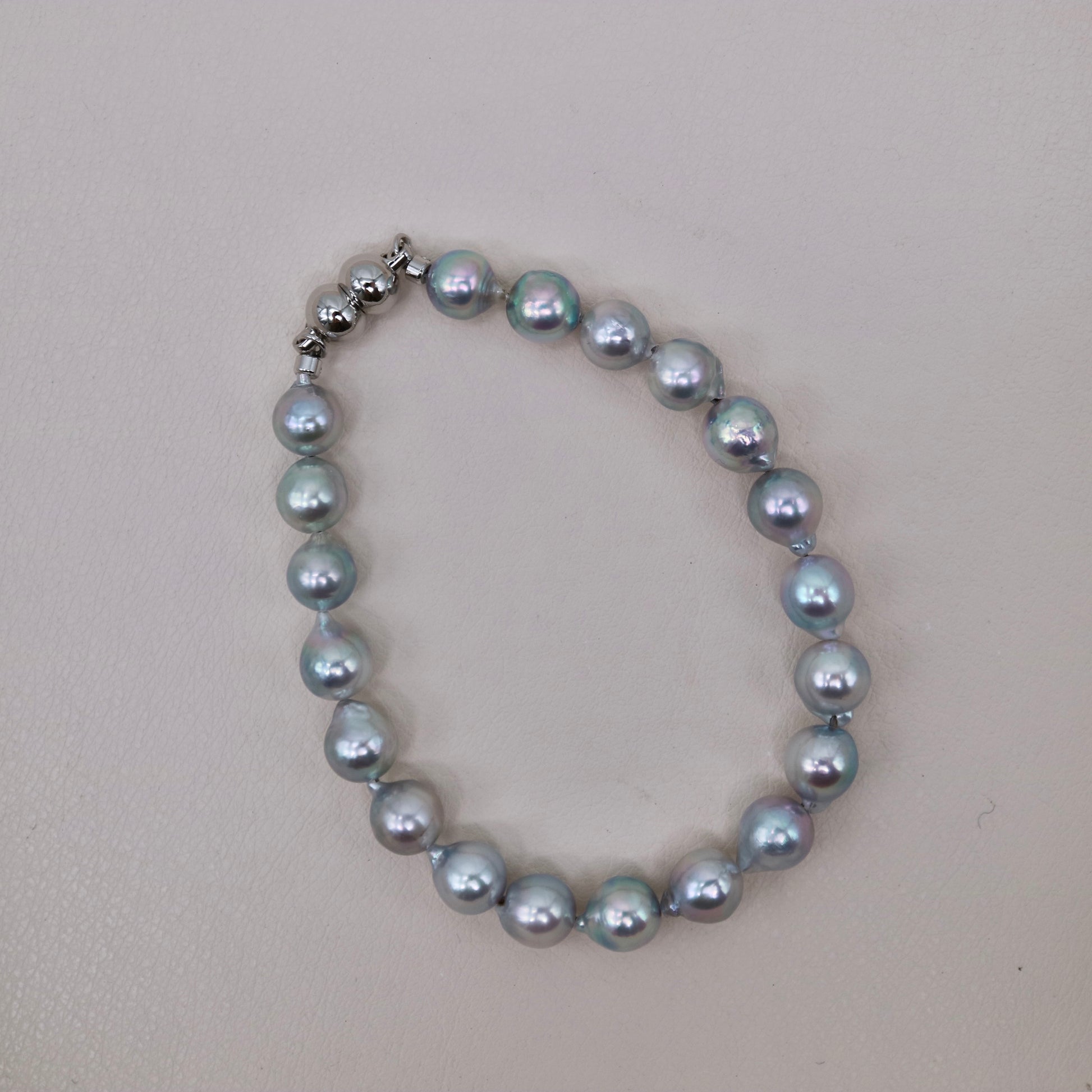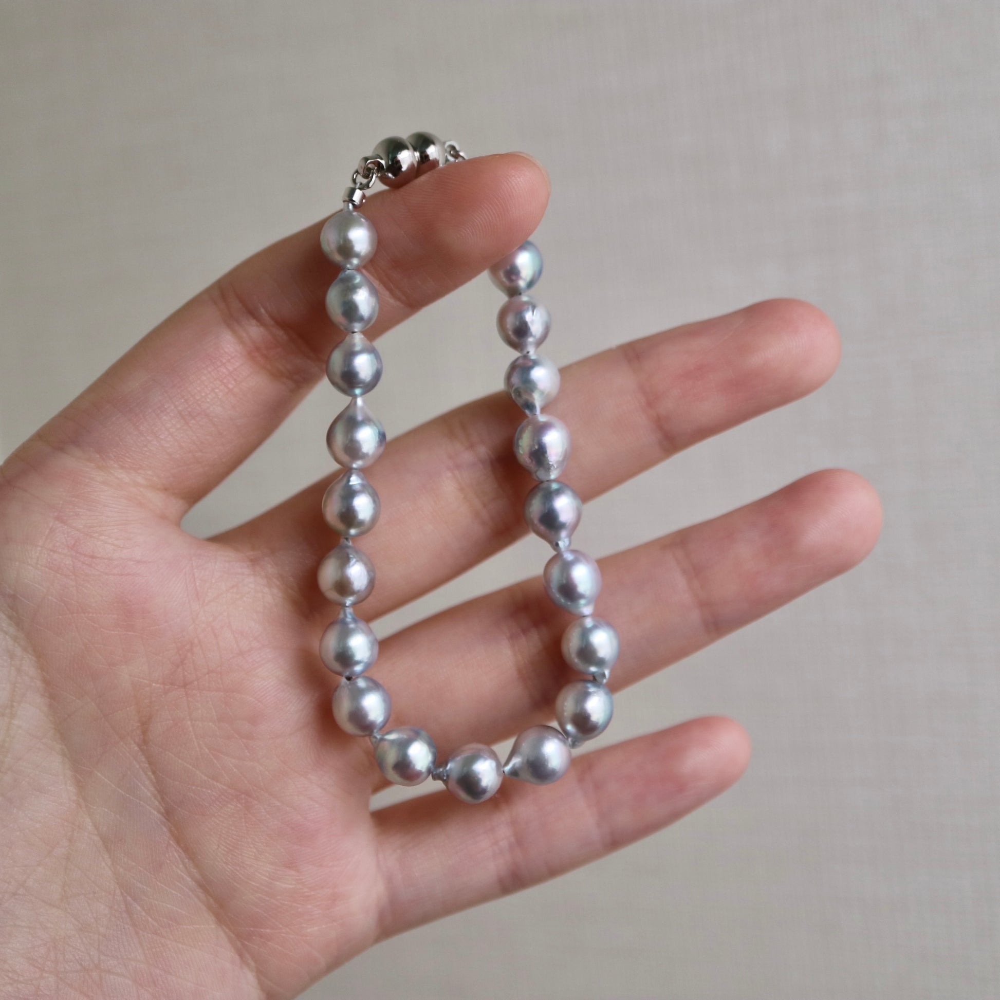 6.5mm Baroque Shaped Natural Silver Blue Akoya Pearl Beaded Bracelet