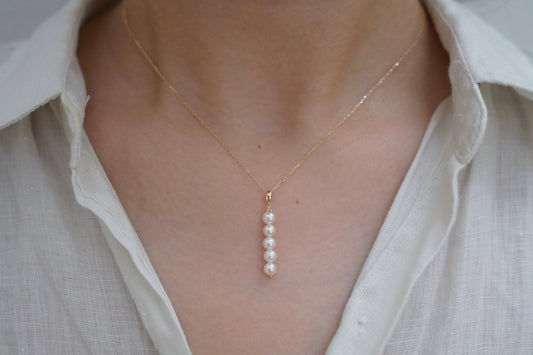 4.5 毫米日本 Akoya 珍珠三顆珍珠條狀吊墜項鍊 10K 金