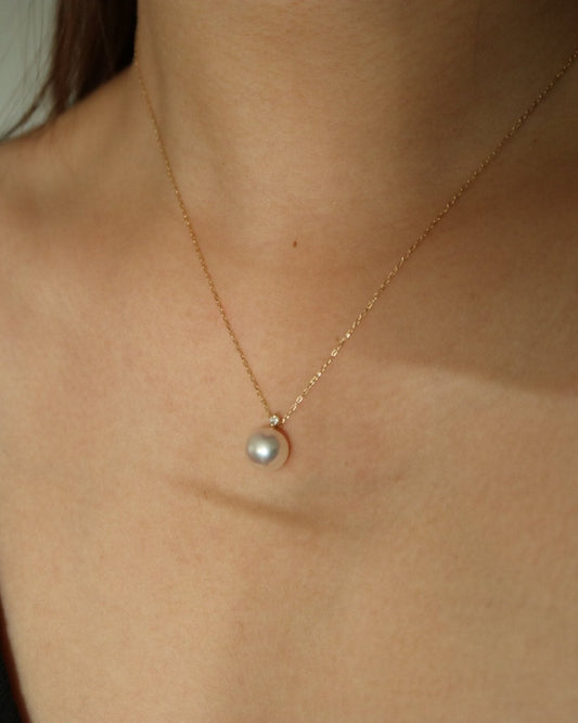 8 毫米天然銀灰色 Akoya 珍珠鑽石吊墜項鍊 18K 白金