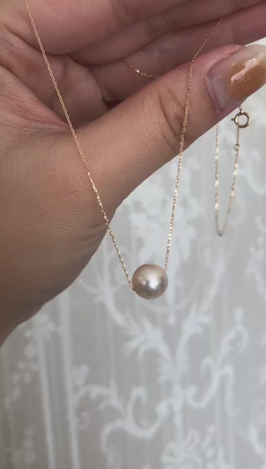 10K 金日本 Akoya 浮珠吊墜項鍊,8.5–9 毫米