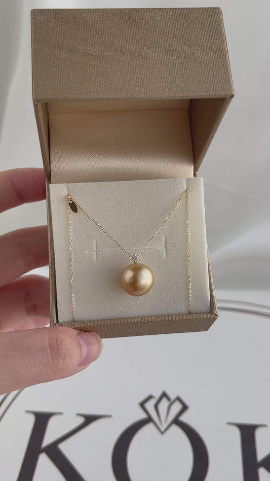11 毫米金色南洋珍珠鑽石吊墜項鍊 18K 金
