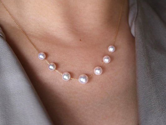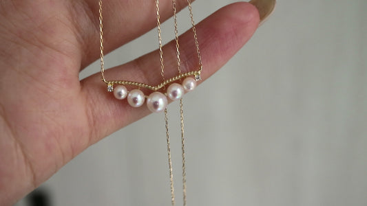 2.5-6 毫米漸層 Akoya 珍珠微笑浮動吊墜項鍊 18K 黃金