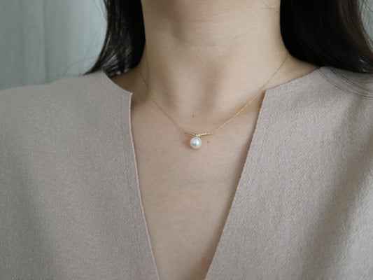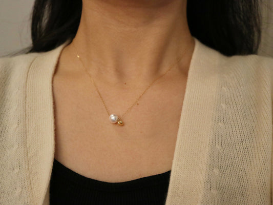 7.5 毫米阿古屋珍珠小心浮動吊墜項鍊 10K 金