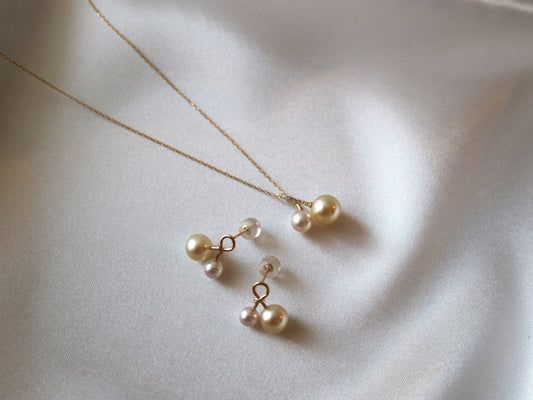 5 毫米 + 7.5 毫米雙色 Akoya 珍珠鑽石小櫻桃吊墜項鍊 18K 黃金