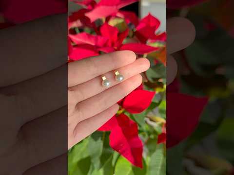 7.5mm Akoya 珍珠 方形設計 耳釘 18K 黃金